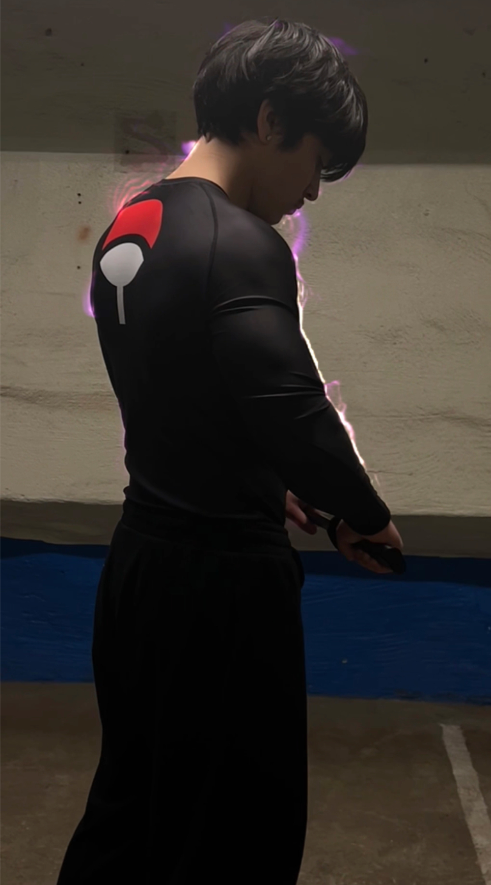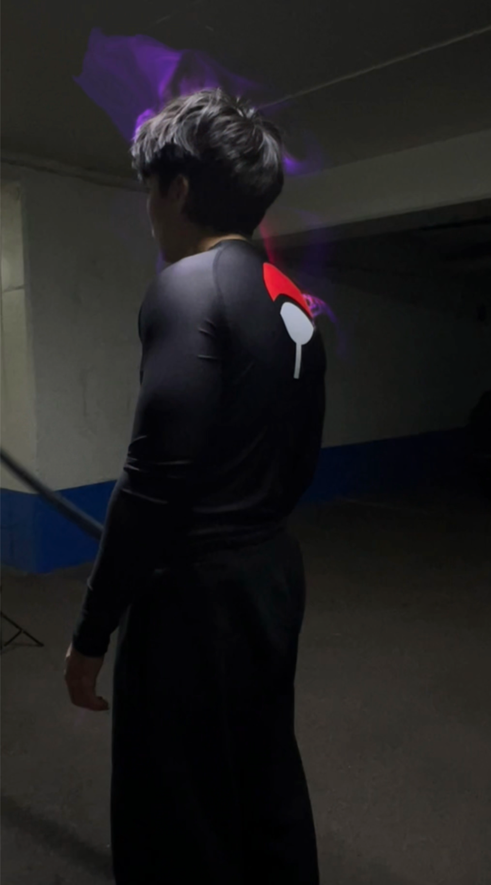 When comparing V1 and V2 of my compression shirts, there are some notable differences in design and quality. V1 featured a thinner, lighter material and a larger back logo, which, while eye-catching, was less aligned with the original Uchcha character design.